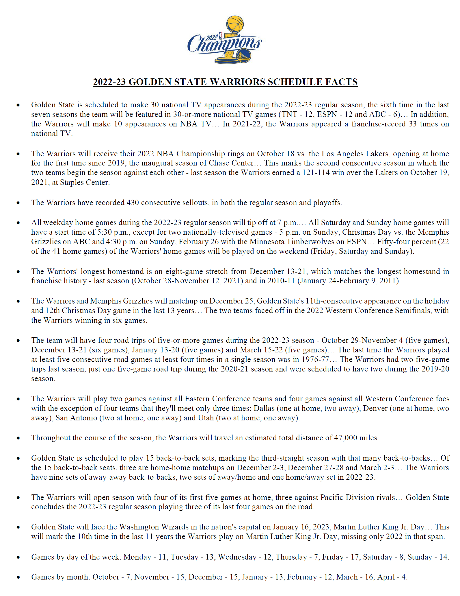 Warriors Pr On Twitter 2021 22 Golden State Warriors Schedule Facts Https T Co X6qv1k4mm1 Twitter